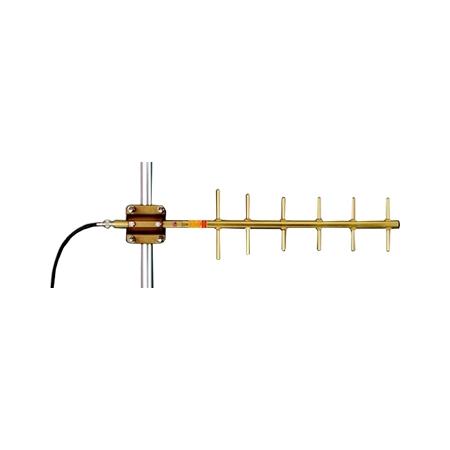 LAIRD Y8966 Yagi antenna offers 9dB gain at 896-970 MHz. Features 6 elements, 300W max power, gold-anodized finish, stainless steel U-bolts for 1-5/8" mounts, N-Female connector, and corrosion-resistant internal matching design.Technical Specs