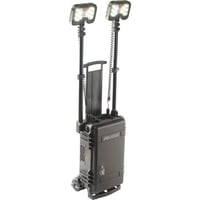 Pelican 9460 Remote Area Lighting System features dual telescoping LED heads in a durable protector case. Battery offers 3 hrs runtime on high, 24 hrs on low, with 500 cycle lifespan. Eco-friendly alternative to generator lights. Recharge time: 8 hrs. Color: Black.Features