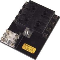 BUSSMANN 15600-08-21 fuse panel features 8 ATC/ATO fuse positions, each supporting 30A circuits. Includes single power input, side-mounted quick disconnects, and a ground pad for secure wiring and protection.Technical Specs