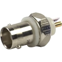 RF Industries RFB-1116-I BNC Female bulkhead connector with insulated design, nickel-plated body, silver center pin, and solder tabs for secure wire connections. Ideal for reliable RF signal transmission.Technical Specs