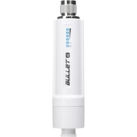 Ubiquiti Bullet AC 5 GHz airMAX AC radio with N connector. Supports 300+ Mbps throughput and dedicated Wi-Fi management. PoE adapter not included. Designed for high-performance wireless networking in the US.Features