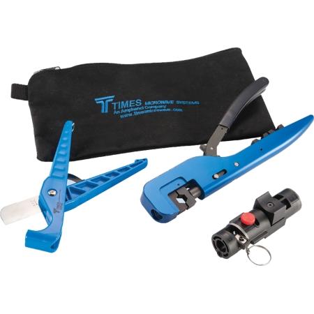 The TIMES MICROWAVE TP-01 canvas tool bag measures 7"x6"x2" and is designed to hold connector installation tools securely. It features durable canvas construction and a zippered closure for safe transport of connector attachment aids.Features