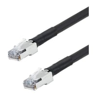 L-COM Cat5e industrial Ethernet cable with RJ45 connectors, 250 feet long, black jacket. Suitable for high-speed data transmission in industrial environments.Technical Specs