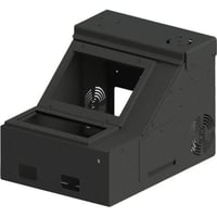 Gamber-Johnson console box designed for secure mounting with 3-inch and 5-inch radio openings, ideal for vehicle workstations and communication equipment installation.