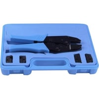 Crimping tool kit by RF INDUSTRIES includes a crimping tool frame, two die sets (44820 and 58038), and a carrying case. Compatible with RG58, RG59, Proflex, RG8, and RG214 cables for reliable RF connections.Technical Specs