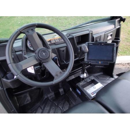The HAVIS DS-GTC-411-3 docking station features triple pass-through antennas and full port replication for Getac T800 tablets. Its low-profile design fits VESA 75 mounts, includes lock and key, and offers secure cable management with rounded edges for safety in vehicles.