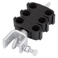 COMMSCOPE double hanger kit supports 1/2" coaxial cables, ideal for HELIAX 2.0 aluminum and copper cables. It stacks 2-6 cables per hardware set, reducing material and installation costs. Kit includes clamps, angle adapter, threaded rod, nuts, and washers for one cable attachment point.Features