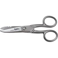 Klein 2100-9 electrician's scissors feature stainless steel blades with built-in stripping notches. Measuring 5.25 inches, these durable scissors provide precise cutting and wire stripping for electrical tasks.Technical Specs