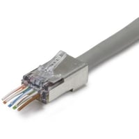 PLATINUM TOOLS 105027 ezEX44 shielded RJ45 connectors support larger CAT6 cables with integrated Hi-Lo stagger load bar. Allows easy wiring verification and is terminated using EXO Crimp Frame and EXO-EX Die for reliable connections.Features