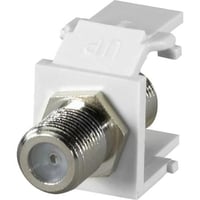 SIGNAMAX CMK-F-WH F Type Keystone Connector Module in white. Ideal for easy installation in keystone wall plates and panels, ensuring secure coaxial cable connections for TV, satellite, and broadband applications.Technical Specs