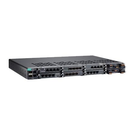 MOXA Layer 2 switch featuring 2 FE/GE SFP slots, 2 FE/GE TX ports, 6 Ethernet module slots, and 2 power module slots for flexible network...