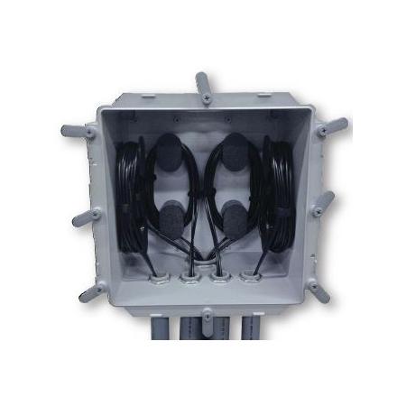 JSOURCE 12128FM4SEC fiber management box measuring 12x12x8 inches, featuring four sectors for organized cable management and protection in fiber optic installations.Technical Specs