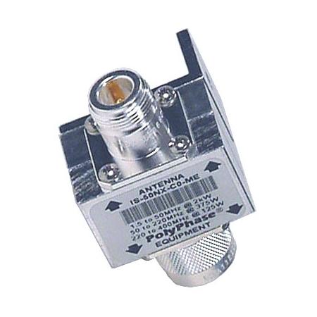 Polyphaser 1.5-700 MHz coaxial RF surge protector with 2 kW power rating. Supports up to 50,000 amps surge current. Features N female antenna port and N male equipment port. Provides reliable lightning and surge protection for RF systems.Technical Specs