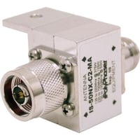 POLYPHASER 125-1000 MHz coaxial RF surge protector offers 375W power handling, 50,000A max surge, 600 VDC turn-on voltage. Features N female equipment port and N male antenna port with flange mount design for reliable protection.Technical Specs