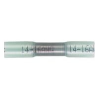 100-pack blue vinyl heat shrink butt connectors by HAINES, for 16-14 AWG wires. Adhesive-lined, seamless insulation resists water, salt, and corrosion, ensuring secure, durable wire connections.Technical Specs