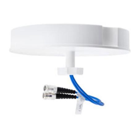 Indoor ceiling mount omni-directional DAS antenna covering 698-960, 1710-2700, 3400-4200 MHz bands. Features dual vertical polarization, 3-5 dBi gain, low PIM, and 2 Type N female connectors for reliable performance.Technical Specs