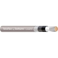 Southwire TelcoFlex III 8 AWG central office power cable, gray color, single 7-strand Class B conductor with braid. Low Smoke Zero Halogen (LSZH) insulation and rated for 600 volts, ideal for reliable power distribution in telecom applications.Features