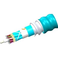 COMMSCOPE LazrSPEED 550 12-fiber OM4 (50 µm) multimode fiber cable with interlocking aluminum armor and riser-rated jacket. Designed for indoor riser applications, aqua color, single unit for high-speed data transmission.Technical Specs