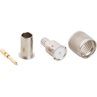 Amphenol mini UHF male straight crimp connector, 50 Ohm impedance, compatible with RG58/U, 58A, 58B, and 58C cables. RFX version, single pack, ideal for reliable RF connections.Technical Specs