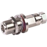 CommScope F1PNF-BHC N Female bulkhead connector for 1/4 in FSJ1-50A cable. Supports 0-6000 MHz, 50 Ohm impedance. Features trimetal plated outer and silver plated inner contacts. RoHS compliant and ISO 9001:2015 certified.Technical Specs
