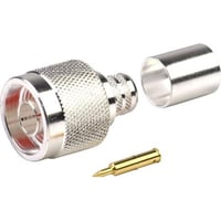 RF Industries RFN-1006-3E N Male crimp connector fits RG8U, RG8A/U, RG213 cables. Features silver-plated body, gold-plated center pin. Designed for crimping center pin and braid for secure RF connections.Technical Specs