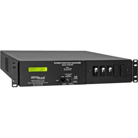 NEWMAR Power Function Manager is a rackmount system for control, monitoring, and distribution of 12, 24, or 48 VDC power sources. Features include a 500A parallel bus, digital meter, status lights, load circuits, low voltage disconnect, and alarm contacts for integrated DC power management.Technical Specs