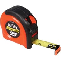 Lufkin L725MAG tape measure features a 25ft length, 1in wide blade, dual magnetic hook, non-slip rubber blade lock, and a durable ABS case with co-molded rubber grip in high-visibility orange for enhanced durability and ease of use.Technical Specs