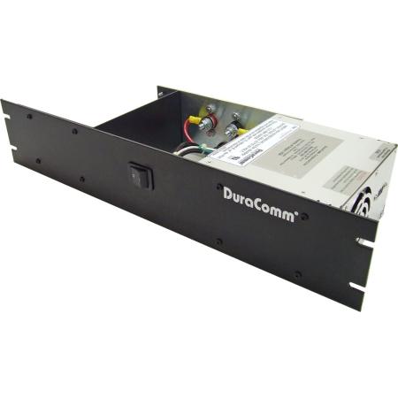 DuraComm RM-548 converts 90-130 or 180-280 VAC to 48 VDC at 5A. Features power factor correction, and protections against short circuit, overload, over voltage, and over temperature. Compact 2U (3.5 in) height fits standard 19-inch racks.Technical Specs