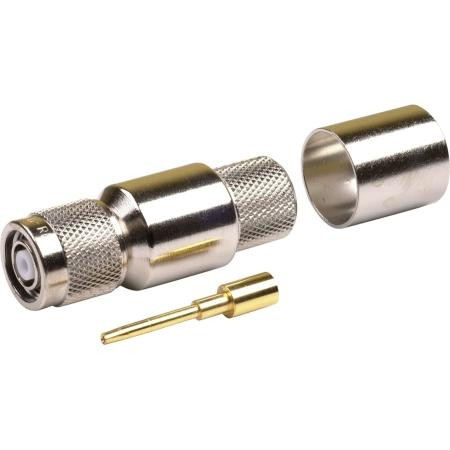 Times Microwave TC-600-TM-RP Reverse Polarity TNC Male connector for LMR-600 coaxial cable. Features a soldered center pin and crimp-on braid termination for secure and reliable connections.Technical Specs