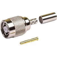RF Industries RP-1202-C1 reverse gender TNC male connector designed for RG-142/U cables. Features a crimp-style attachment, nickel-plated body, and gold-plated center pin for reliable RF connections.Technical Specs