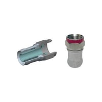 BELDEN DB59U-25 compression F-type coax connector for RG59 cables. Fits standard, tri-shield, and quad-shield RG59 coaxial cables. Features full metal compression for secure connection. Suitable for 20AWG cables with BNC male interface.Features