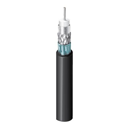 Belden 4794R RG-7 coaxial cable supports up to 12 GHz and 4K UHD video. Features 16 AWG silver-plated copper conductor, 95% shield with Dufoil and Beldfoil layers, 75 Ohm impedance, gas-injected foam polyethylene insulation, and durable PVC jacket.Technical Specs