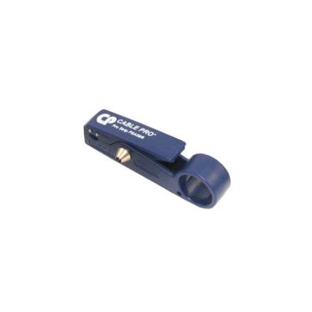 Belden cable stripper designed for RG59, RG6, and RGB mini coaxial cables. Features a patented cable stop for precise 1/4 inch cable preparation. Includes two replacement blade cartridges for extended use.Features