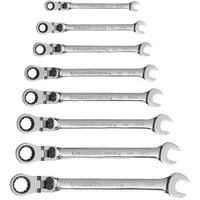GearWrench 9620 metric ratcheting wrench set includes 12 reversible wrenches (8-19 mm). Features a ratcheting mechanism for continuous turning without flipping. Comes organized in a durable wrench rack for easy storage and access.Technical Specs