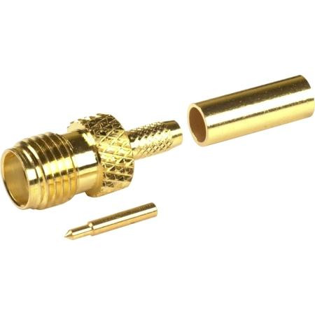 RF Industries RP-3050-1B SMA Female Reverse Polarity connector for RG174, RG188, RG316 cables. Features nickel-plated body, gold-plated pin, Teflon dielectric, and crimp attachment for secure connections.Technical Specs