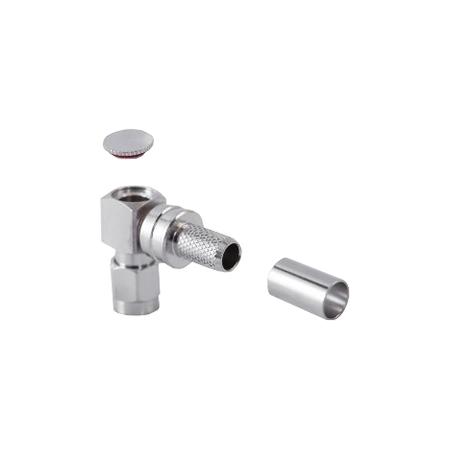 Times Microwave TC-240-SM-RA-SS-D SMA Male Right Angle crimp connector with solder pin and no braid trim. Designed for reliable RF connections with a compact right angle design.Features