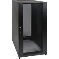 SmartRack 25U enclosure features 24" width, 42" depth, 4 adjustable mounting rails, perforated doors and side panels for airflow, locking removable doors and side panels, 3000 lb stationary load capacity, ships fully assembled with mounting hardware and 5-year warranty.Features