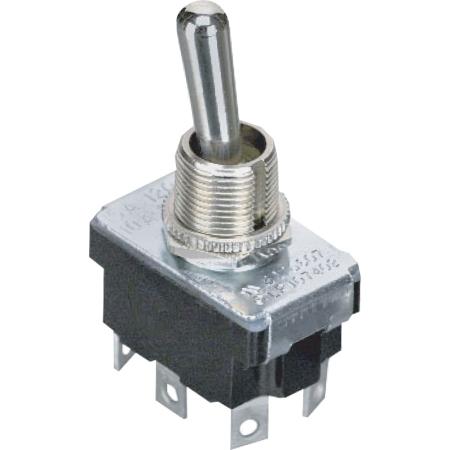 GC/WALDOM 35-152 DPDT toggle switch with bat handle. Medium duty rated 6A at 125VAC and 3A at 250VAC. Features on-on action, 0.500 inch mounting hole, and solder type terminals.Technical Specs