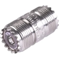 Amphenol 083-1J adapter features a straight barrel design with PL-258 connectors, providing a reliable UHF Female to UHF Female connection for radio and antenna setups.