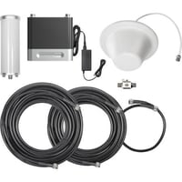 weBoost Office 100 signal booster kit includes a 50 Ohm booster, omnidirectional donor antenna, dome coverage antenna, and lightning arrestor for reliable cellular signal improvement in office environments.Features